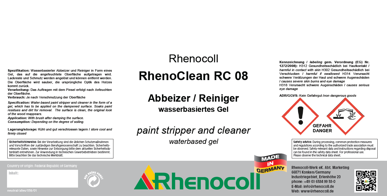 Spezifikation: Wasserbasierter Abbeizer und Reiniger in Form eines Gels, das auf die angefeuchtete Oberfläche aufgetragen wird. Lackreste und Schmutz werden angelöst und können entfernt werden. Die Oberfläche wird sauber, die ursprüngliche Optik des Holzes kommt zurück.