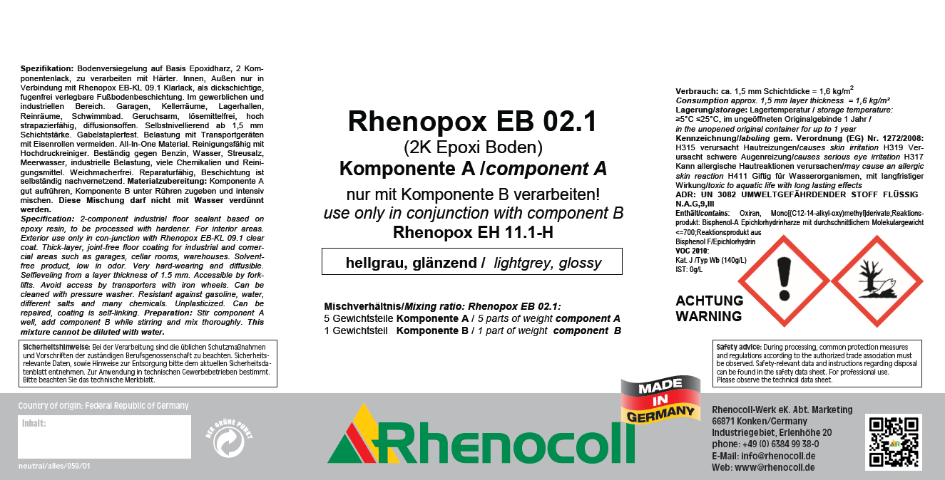 - Produkt besteht aus der Mischung von Komponente A = Rhenopox EB 02.1
