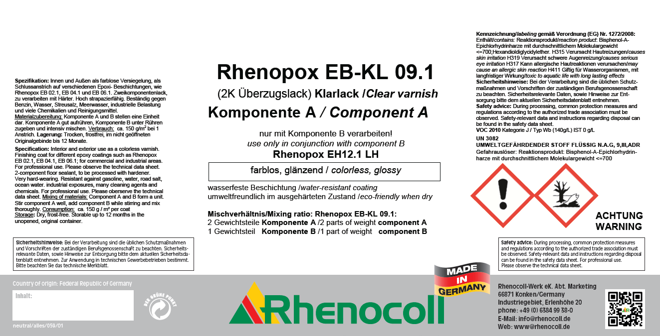 - Produkt besteht aus Mischung Komponente A = Rhenopox EB KL 09.1 und