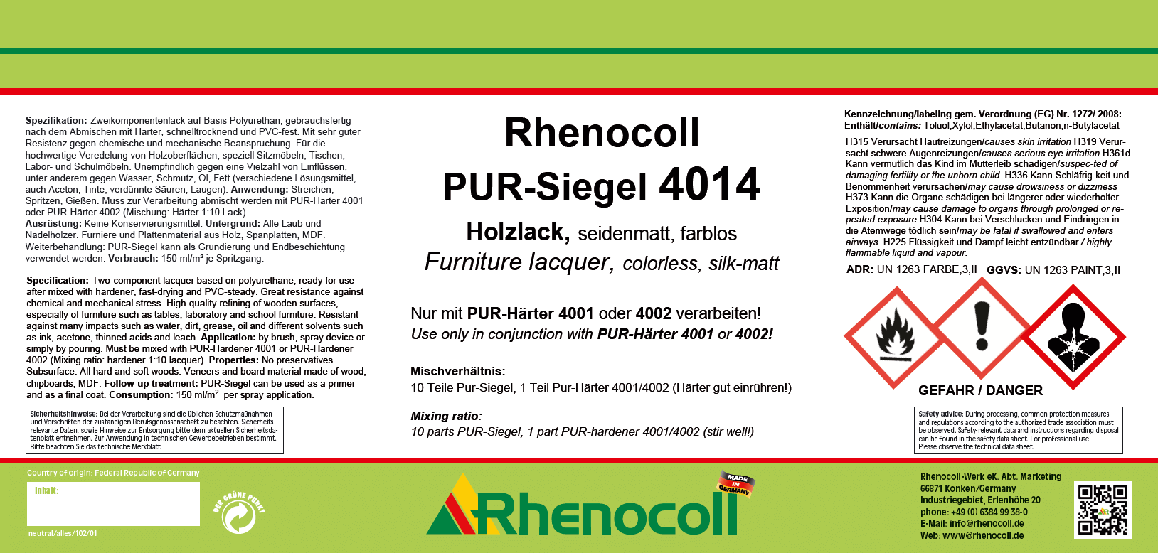 abmischt werden mit PUR-Härter 4001 oder PUR-Härter 4002 (Mischung: Härter 1:10 Lack).