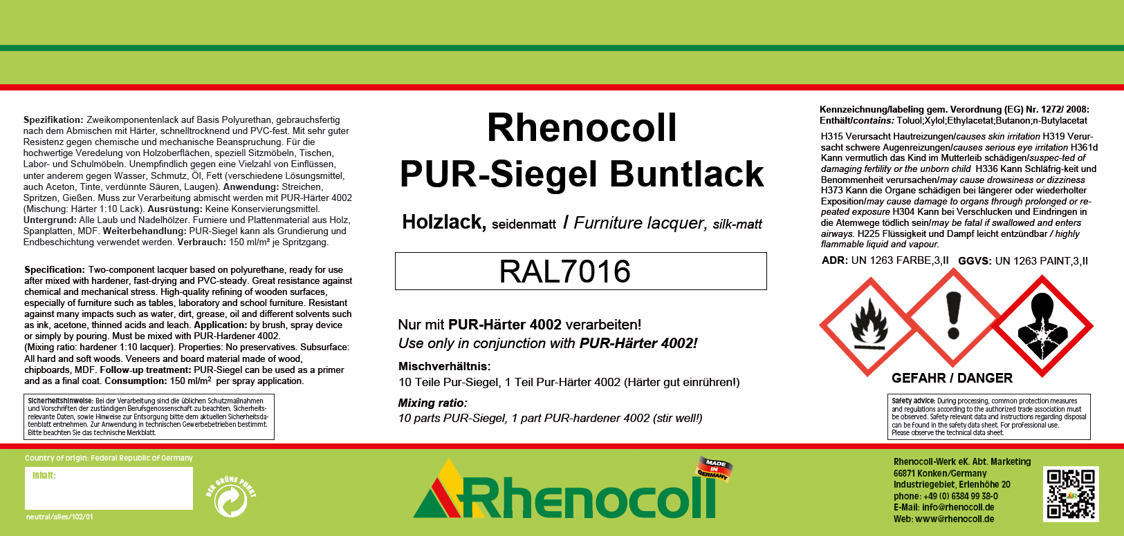 abmischt werden mit PUR-Härter 4002 (Mischung: Härter 1:10 Lack).