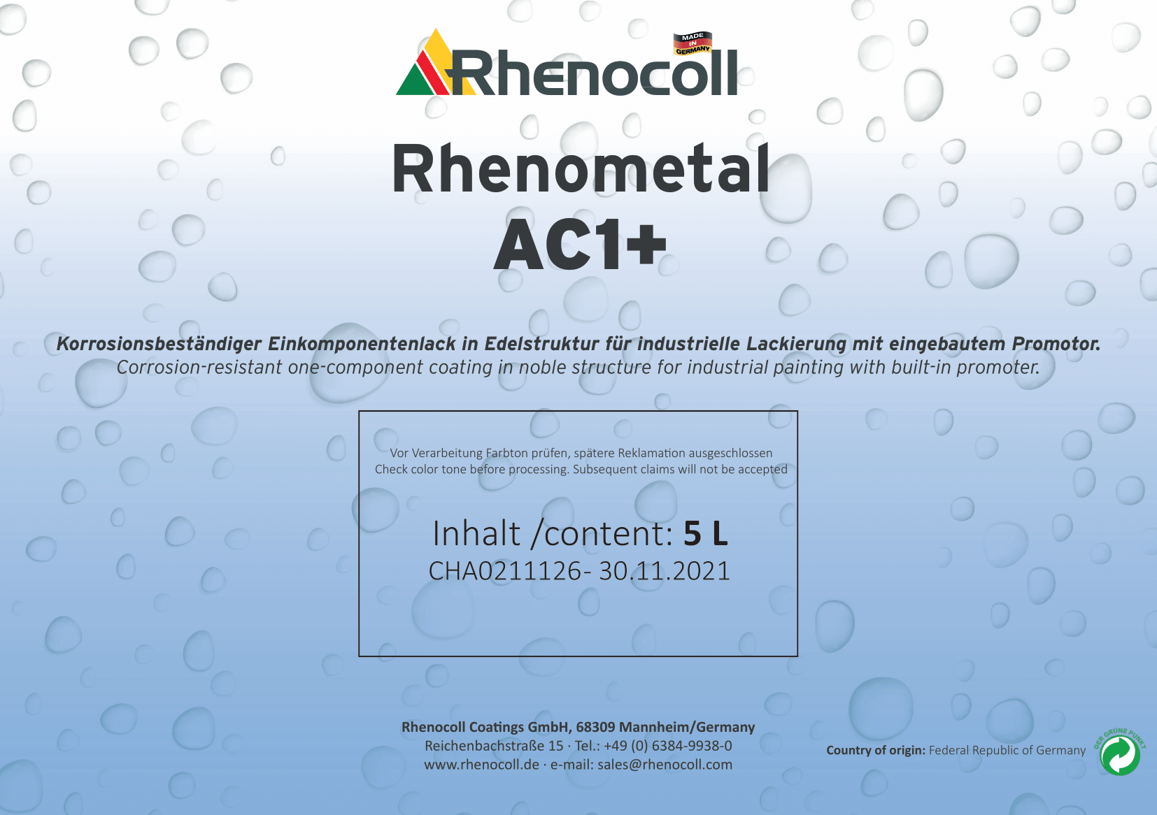 Verdünnung: Rhenometal AC 1+ ist gebrauchsfertig,