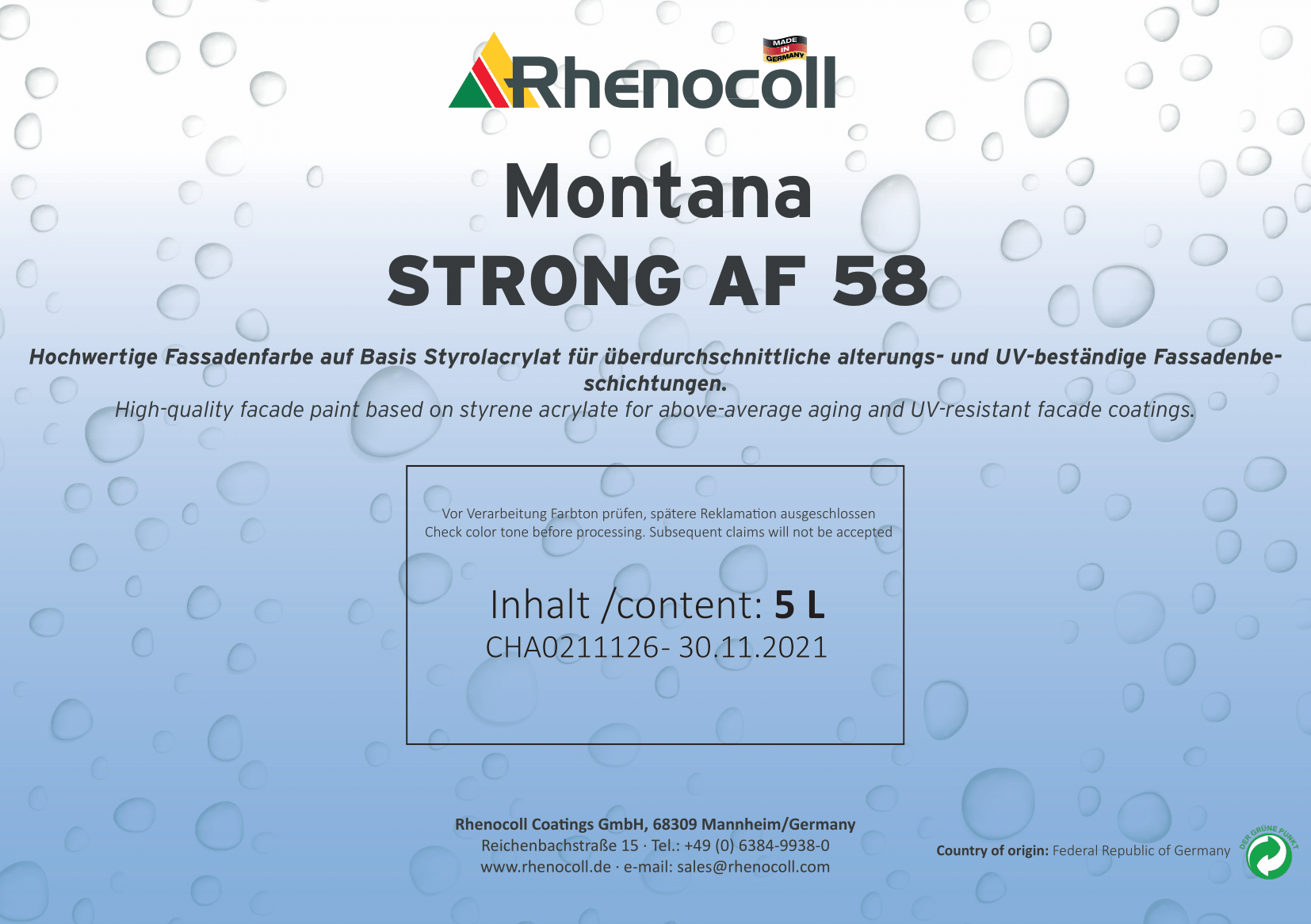 Montana STRONG, AF 58 Styrolacrylat Fassadenfarbe, spannungsarm